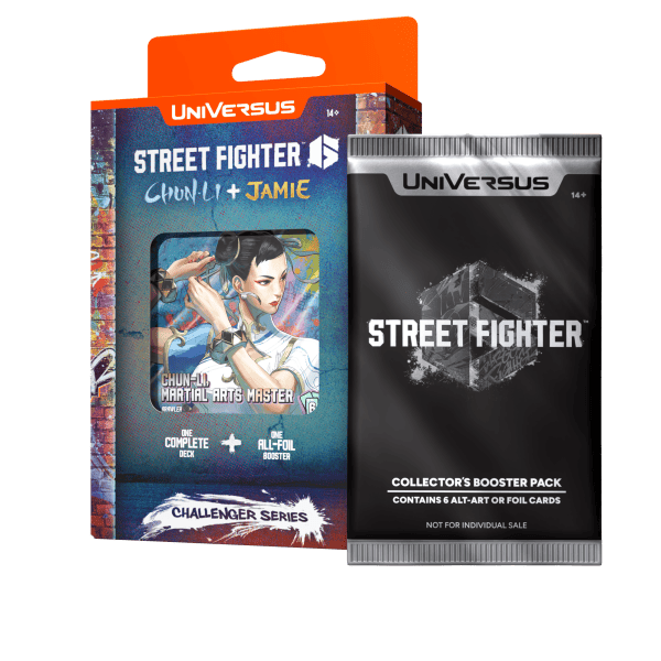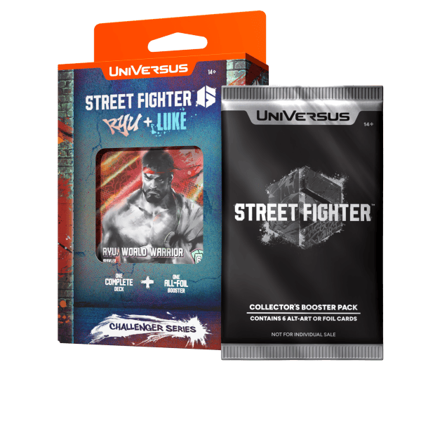 - Each deck includes a collector booster pack, featuring 6 Random Alt-Art or All Foil Cards found in the Street Fighter 6 Challenger Series release.