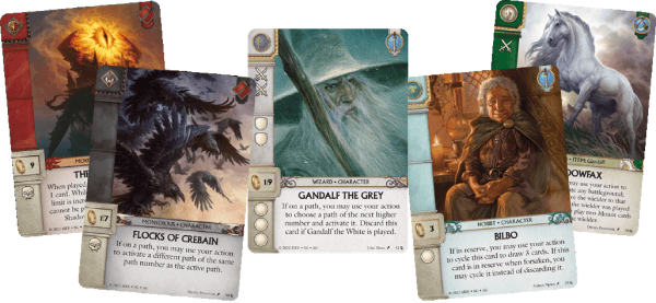 During the game, players will take turns playing cards representing the characters, armies, items, and events of the War of the Ring. Each card they play will help or hinder the journey of the Fellowship as it progresses on its Path; or be used to defend or conquer the strongholds of Middle-earth, as they fight to control the new Battleground cards activated in each round.