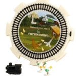 Center hub for Mexican Train, and Chicken Dominoes with accessories. There are 8 train markers, 2 chicken markers, and larger train marker.