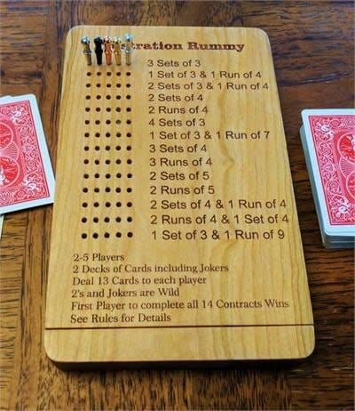 Frustration Rummy, also known as Contract Rummy is a fun card game for up to 5 players.