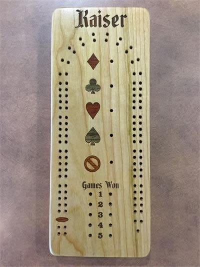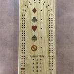 The game board is made with solid Cherry Wood and comes with Metal pegs. Playing cards are not included. Hidden storage with magnetic enclosure.