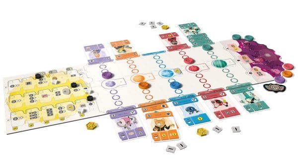Place your influence discs, maneuver across the five worlds (Mercury, Venus, Earth, Mars, Jupiter), develop your research, and choose the strategy that will lead you to victory.